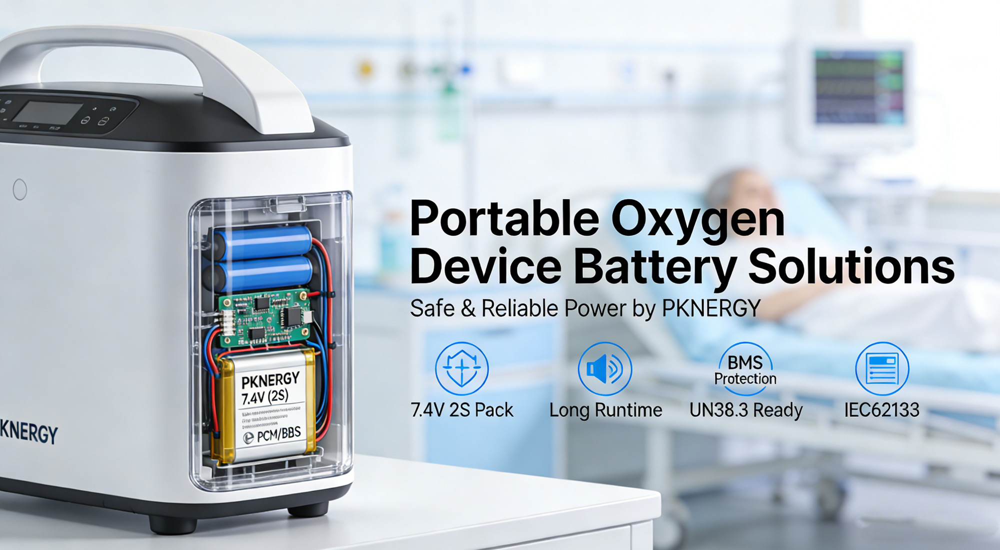 Many portable oxygen devices use 2S lithium-ion packs with 7.4V nominal voltage. The final configuration depends on