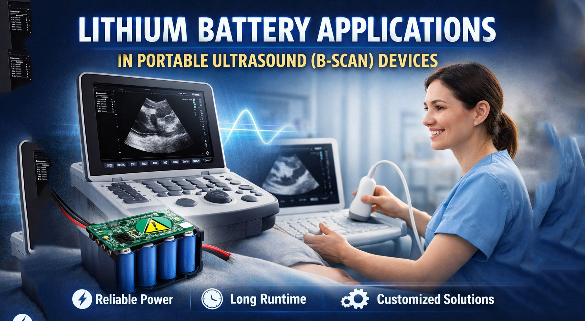 Portable ultrasound (portable B-scan / B ultrasound) enables point-of-care imaging in emergency medicine, rural healthcare, outpatient clinics, and home care. A key enabler of true mobility is a compact, reliable, rechargeable lithium battery system.