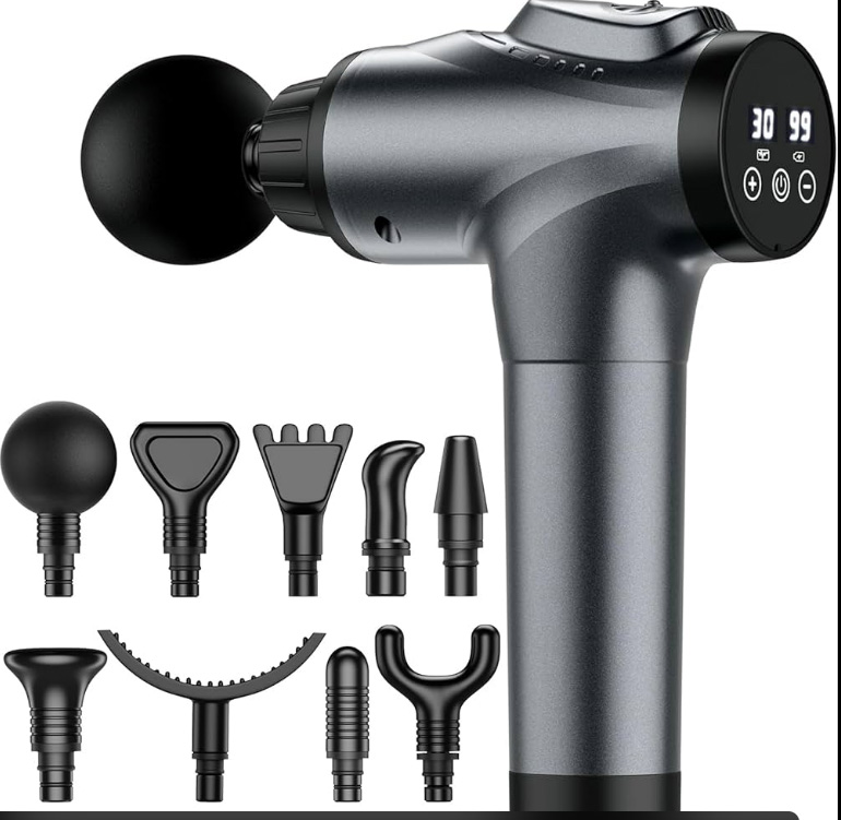 - Premium brushless-motor massage guns with smart displays
