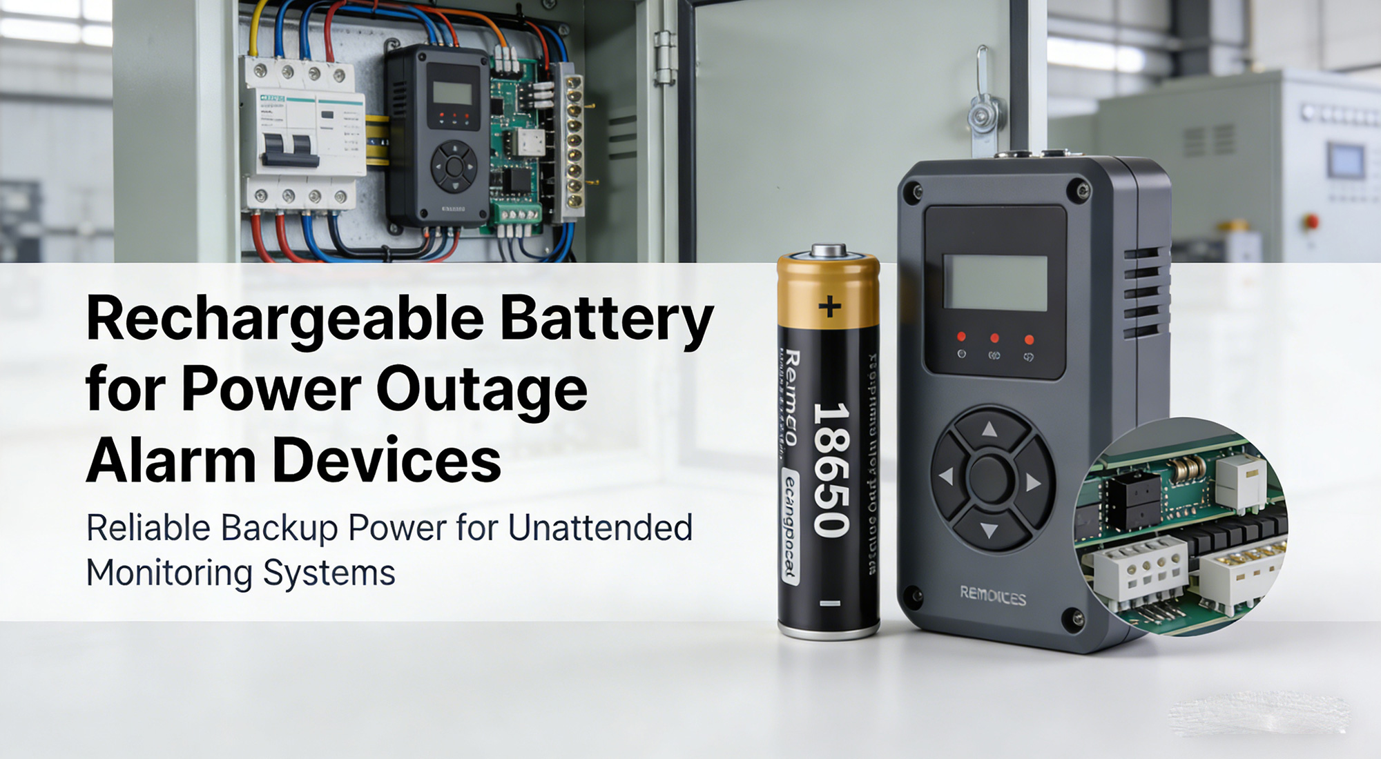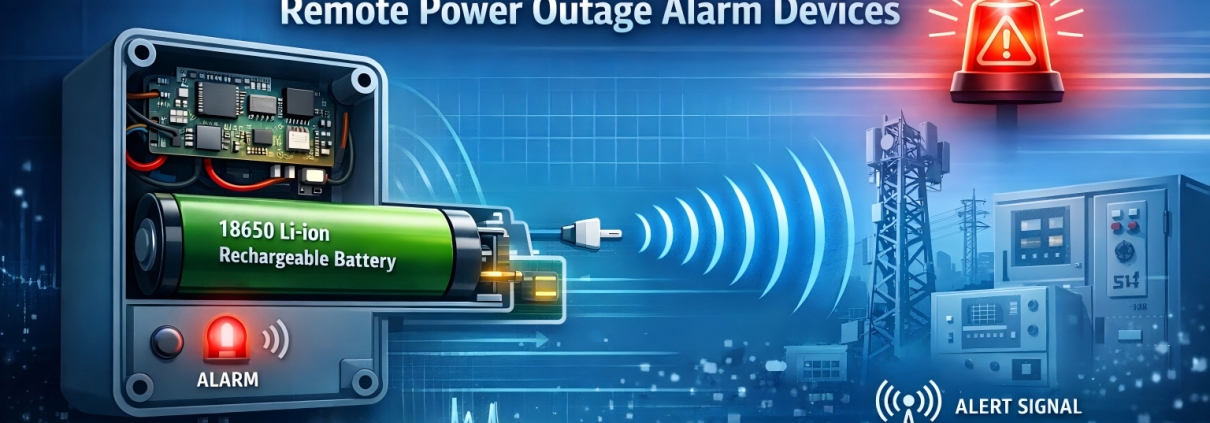 Rechargeable 18650 Li-ion battery solution for remote power outage alarm devices. Stable backup power, low maintenance, and high reliability for unattended monitoring systems. |