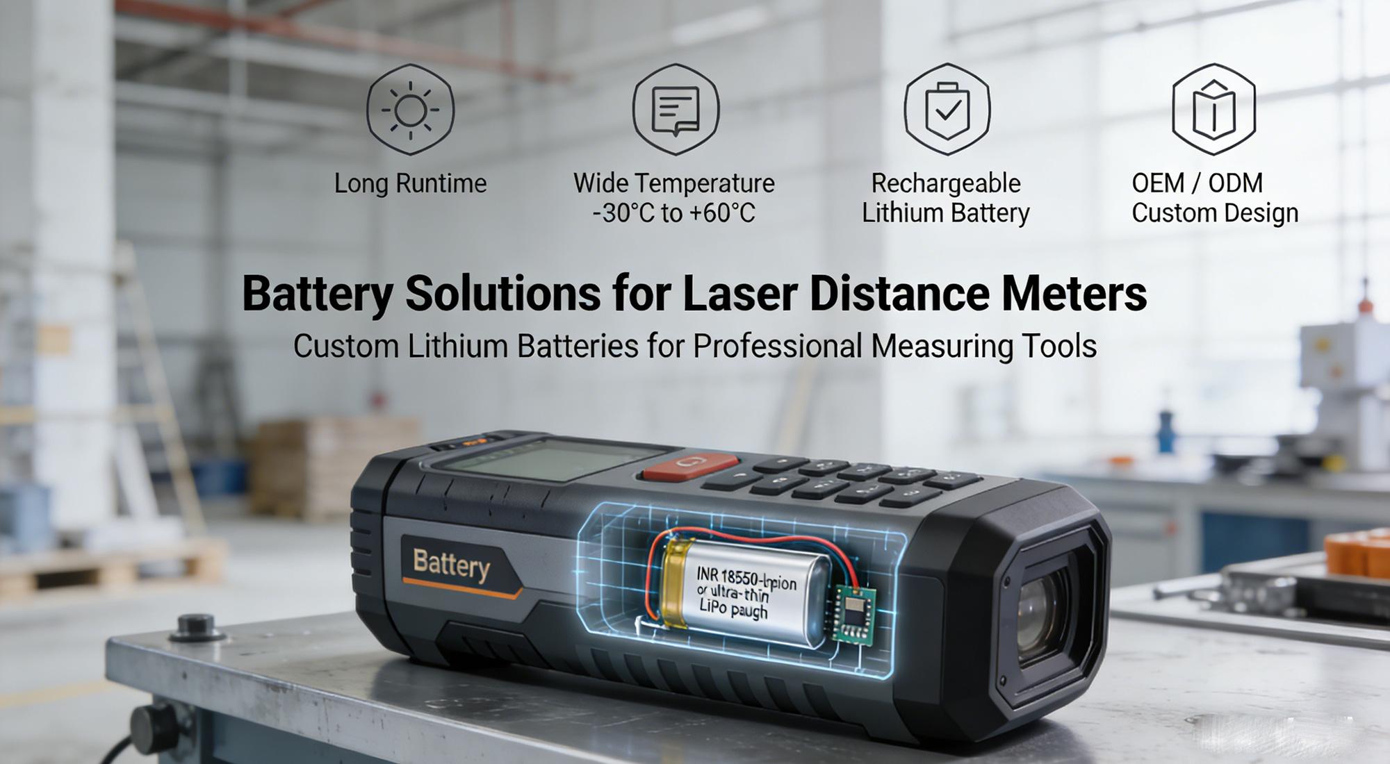 Laser distance meters are widely used in construction, engineering, logistics, and industrial inspection for their high precision, portability, and fast measurement. The key factor that ensures their reliability is the battery – which directly affects usability, stability, and the overall measurement experience.