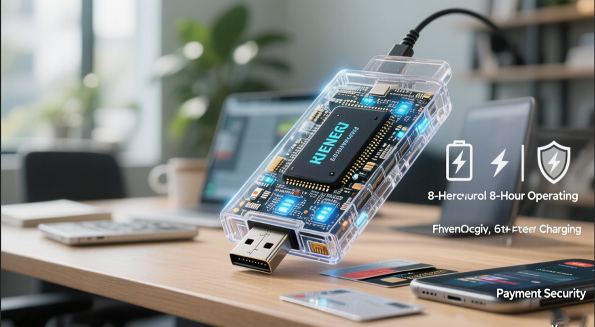 A typical portable card reader integrates NFC/RFID modules, secure encryption chips, wireless communication (Bluetooth,